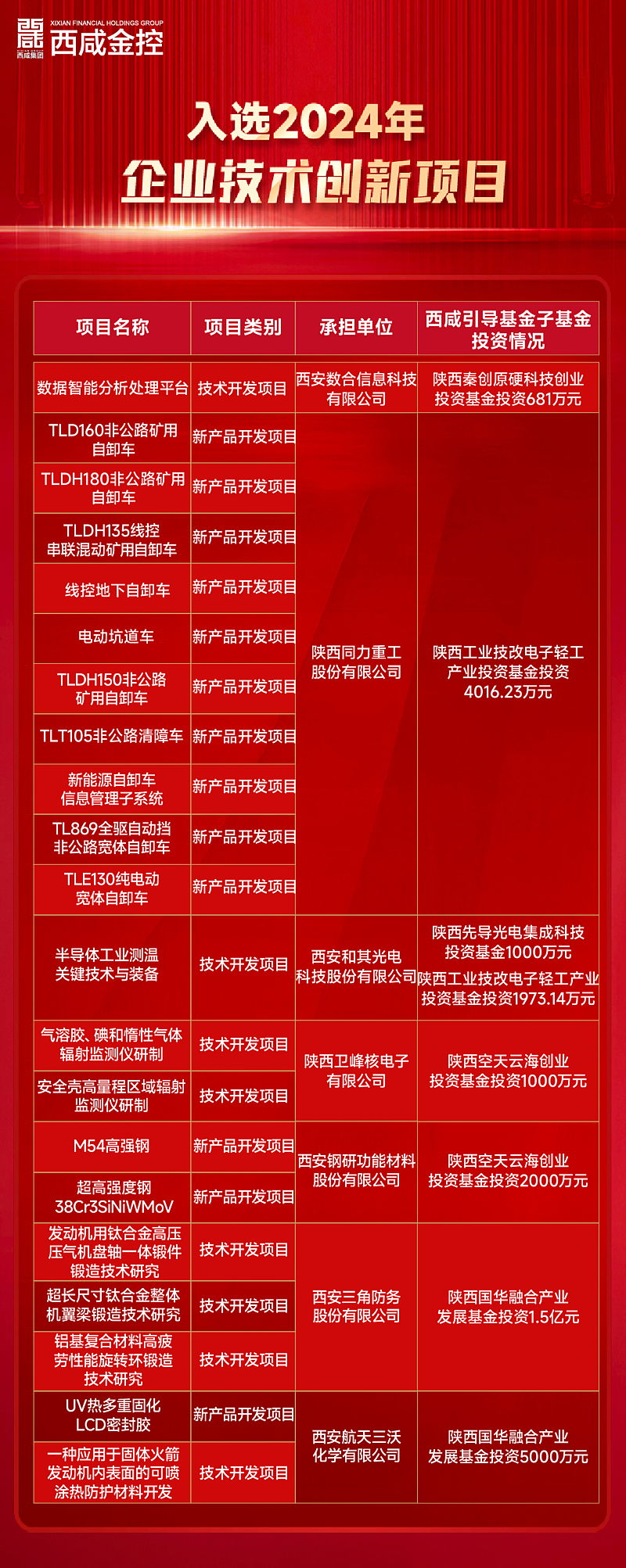 “技術(shù)創(chuàng)新項(xiàng)目計(jì)劃”旨在貫徹落實(shí)創(chuàng)新驅(qū)動(dòng)發(fā)展戰(zhàn)略,鼓勵(lì)企業(yè)開發(fā)新產(chǎn)品、新技術(shù)、新工藝,促進(jìn)產(chǎn)業(yè)轉(zhuǎn)型升級(jí),推動(dòng)經(jīng)濟(jì)高質(zhì)量發(fā)展。西咸引導(dǎo)基金支持企業(yè)入選的項(xiàng)目中,技術(shù)開發(fā)項(xiàng)目8項(xiàng),新產(chǎn)品開發(fā)項(xiàng)目13項(xiàng),本次入選是對(duì)企業(yè)在推動(dòng)產(chǎn)業(yè)發(fā)展、提升行業(yè)技術(shù)水平方面所付出努力的高度認(rèn)可,也是對(duì)西咸引導(dǎo)基金子基金專業(yè)投研能力的充分肯定。